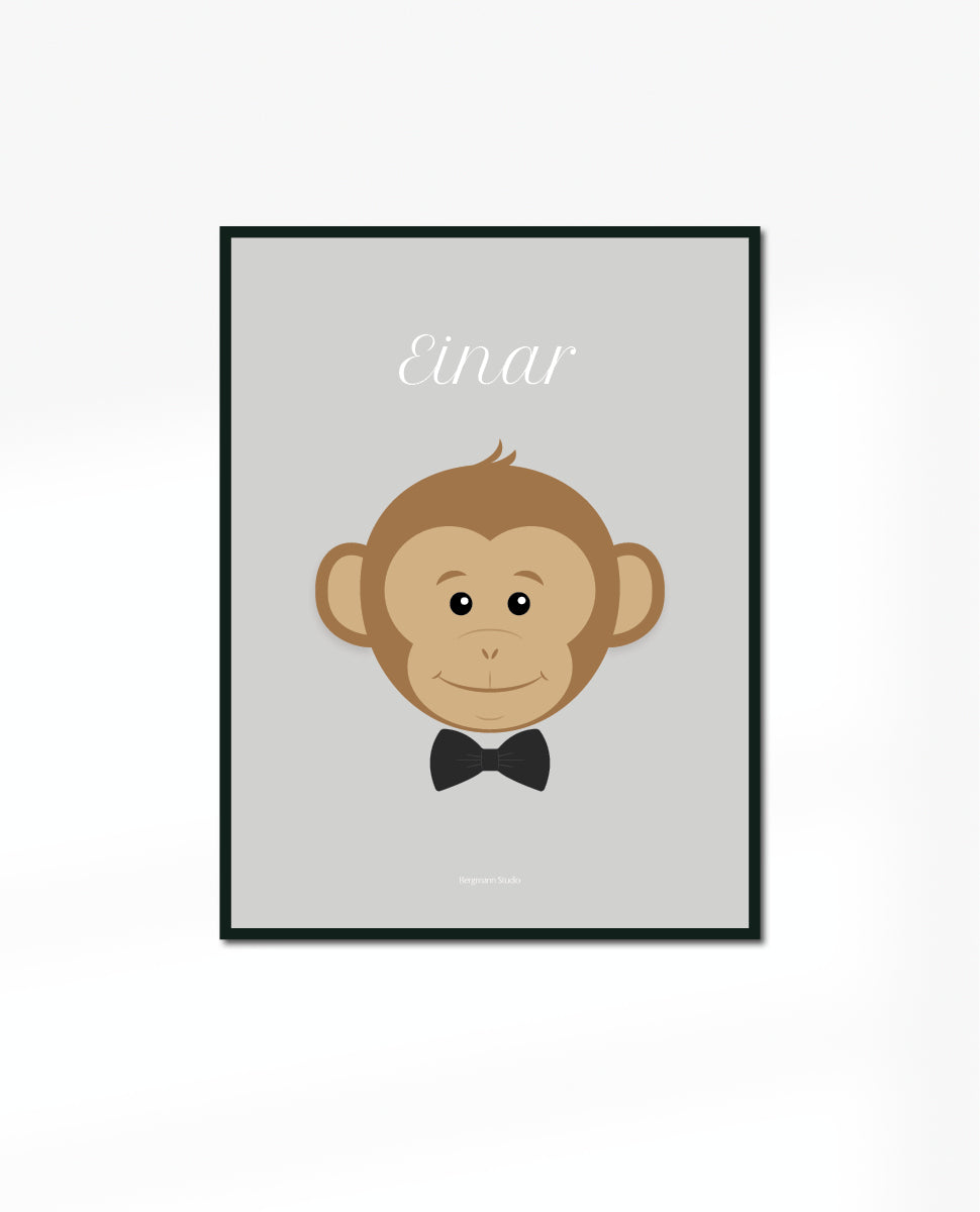 Monkey with Bow tie - Baby Poster - Personalised